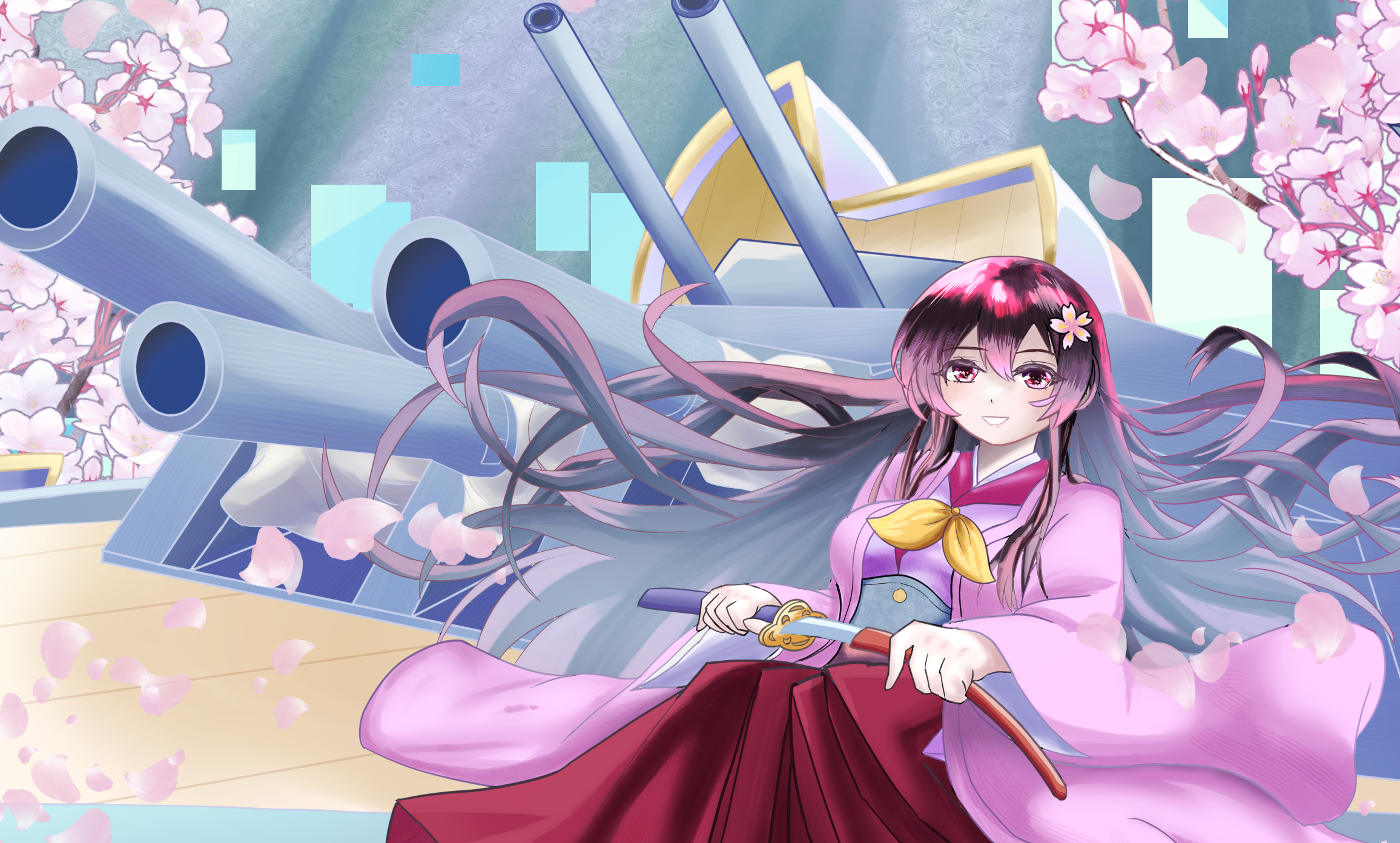 In her ‘ancient form’, the appearance of a Sengoku-era princess, she is a veritable Yamato Nadeshiko. In this form, she can summon huge equipment from the Cyber Force server that lives up to the name of the largest battleship in history.